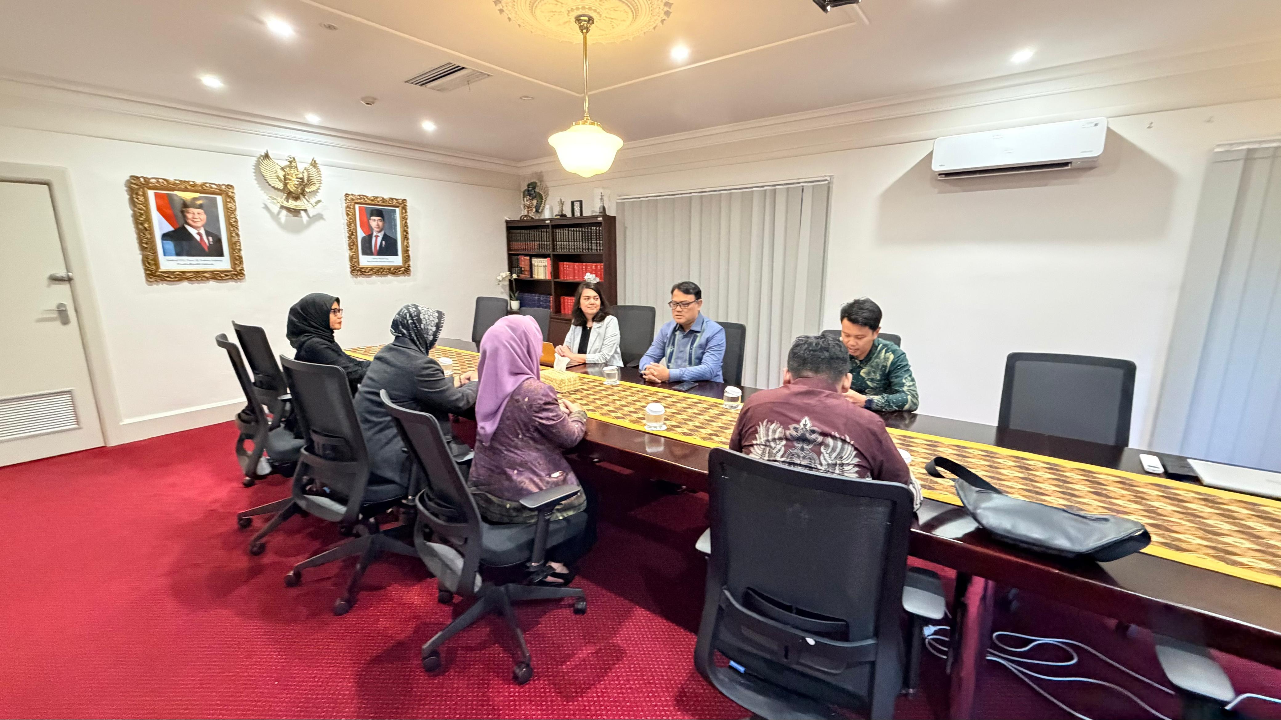 Dukungan tersebut disampaikan dalam pertemuan yang digelar di KJRI Melbourne dalam rangka courtesy meeting dengan Konsul Jenderal RI. Rombongan disambut Konjen RI Melbourne, Yohannes Jatmiko Heru Prasetyo, didampingi Koordinator Fungsi Sosial dan Budaya Ibu Silvany beserta jajaran tim KJRI.